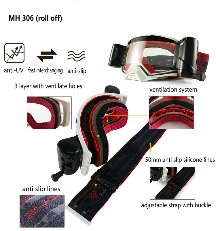 MH 306 Roll Off innner anti fog outer strengthened clear lens motor outdoor sporting goggles